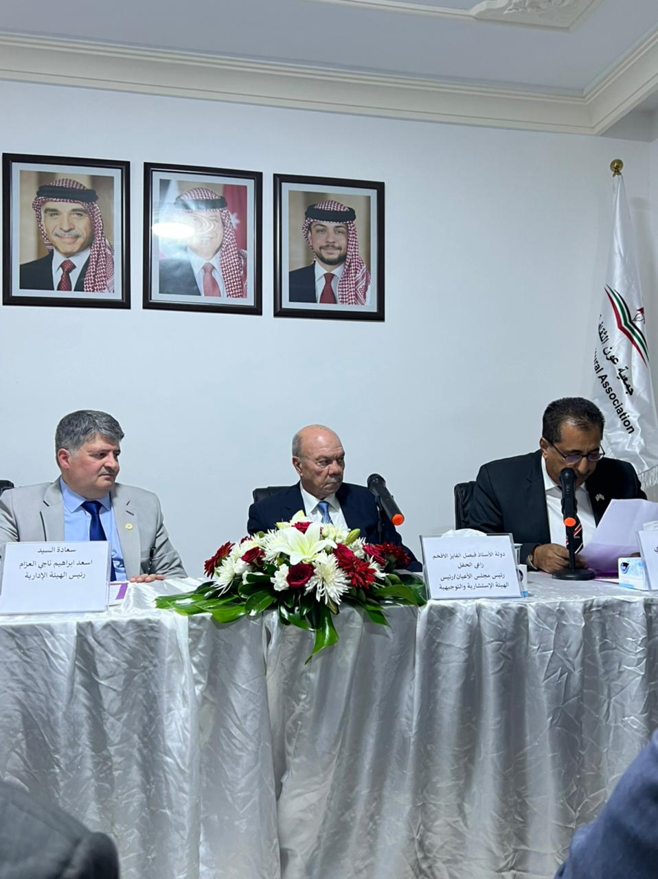 وألقى عطوفة رئيس هيئة مديري جامعة جدارا، الرئيس الفخري للجمعية، الدكتور شكري المراشده كلمة رحب فيها براعي الحفل والحضور الكريم، مباركاً بهده المناسبة للرئيس وأعضاء الجمعية.