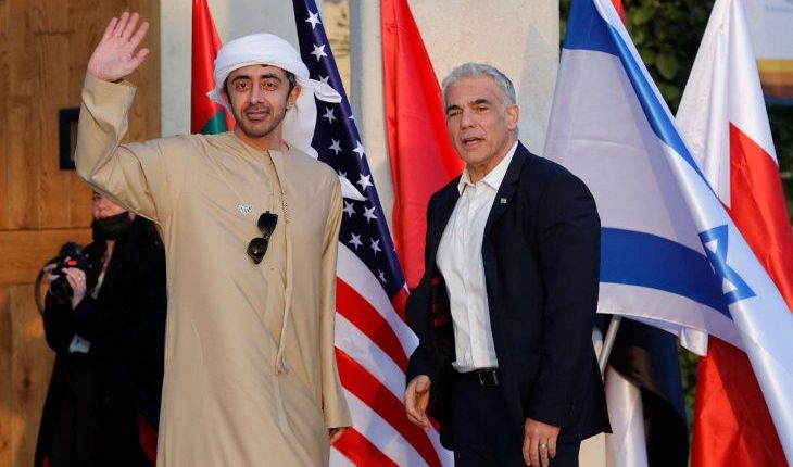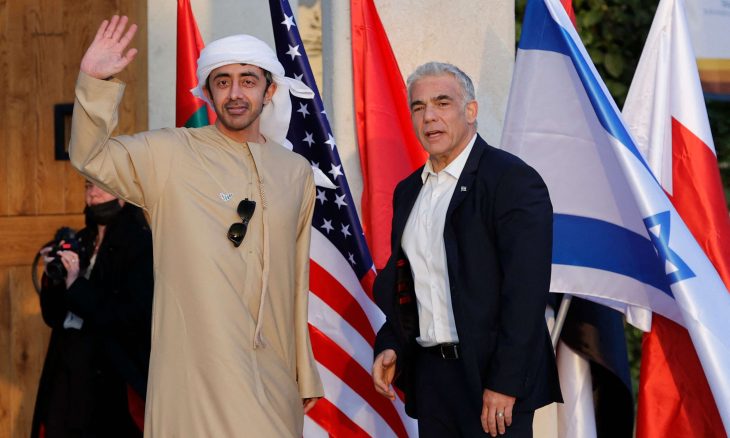 وأوضح البيان أن لبيد وبن زايد بحثا “مواصلة تعزيز العلاقات بين البلدين، والتطوير الاقتصادي والتعاون في مجالات الزراعة والطاقة والمياه والأمن الغذائي”.