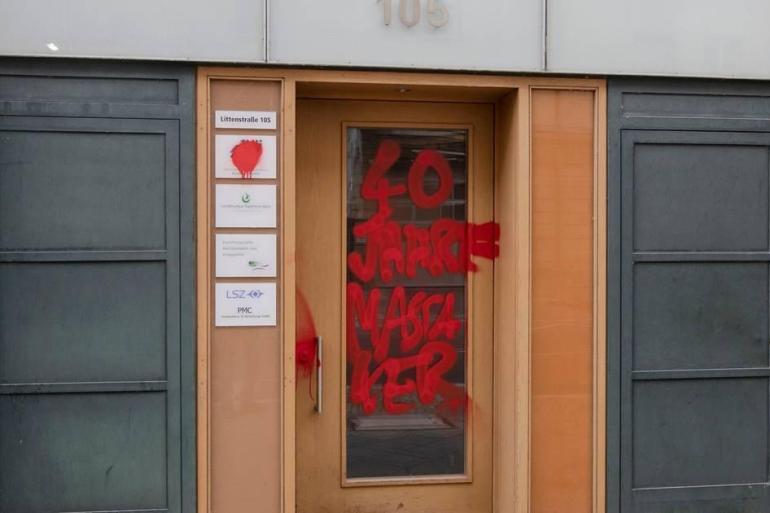 وصرحت متحدثة باسم الشرطة بأن جهاز أمن الدولة (التابع للهيئة الاتحادية لمكافحة الجرائم) يحقق في الحادثة، بعدما لاحظت خدمة التنظيف الكتابات والدهانات باللون الأحمر على المبنى السبت.