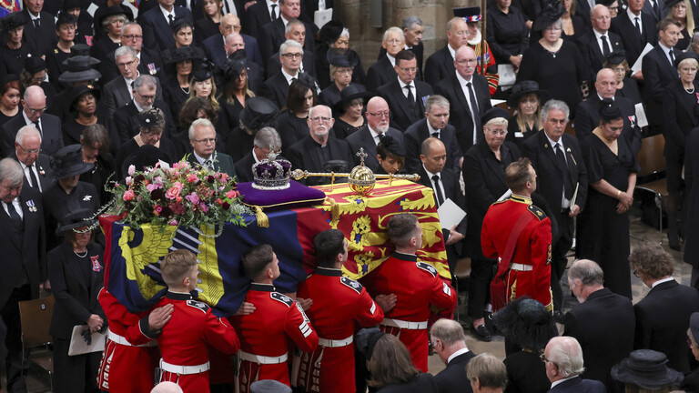 وتم حمل الملكة، التي توفيت عن عمر 96 عاما، في نعشها المصنوع من خشب البلوط إلى عربة البندقية، التي استخدمها والديها، وتبعها ابنها الملك تشارلز الثالث، وبقية الأقارب، بينما كان يوجد نحو مليوني شخص في وسط لندن على طول طريق الموكب.