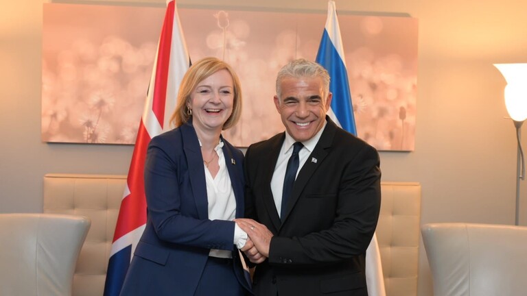 وخلال لقائه رئيسة الوزراء البريطانية ليز تراس، على هامش الجمعية العامة للأمم المتحدة، في مدينة نيويورك الأمريكية، قدم لابيد تعازيه في وفاة الملكة إليزابيث الثانية. وهنأ تراس على انتخابها معربا عن ثقته بأن “تصل العلاقات بين البلدين إلى قمم جديدة في سلسلة من المجالات، وخاصة في مجالات الاقتصاد والإبداع والأمن” تحت قيادتها.