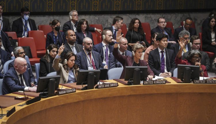 وكان مشروع القرار الذي طرحته الولايات المتحدة وألبانيا على التصويت في مجلس الأمن يوم الجمعة، يدين “تنظيم روسيا لاستفتاءات غير شرعية في المناطق الأوكرانية”، وينص على أن تلك الاستفتاءات “لا يمكن أن تكون أساسا لتغيير صفة المناطق الأربع”.