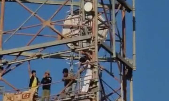 وتناقل نشطاء على مواقع التواصل الاجتماعي صورا للمجموعة وهم يعتلون برج اتصالات في المحافظة، في حين تواجدت الأجهزة الأمنية وكوادرمن الدفاع المدني في المكان، للحيولة دون إلقاء أنفسهم.