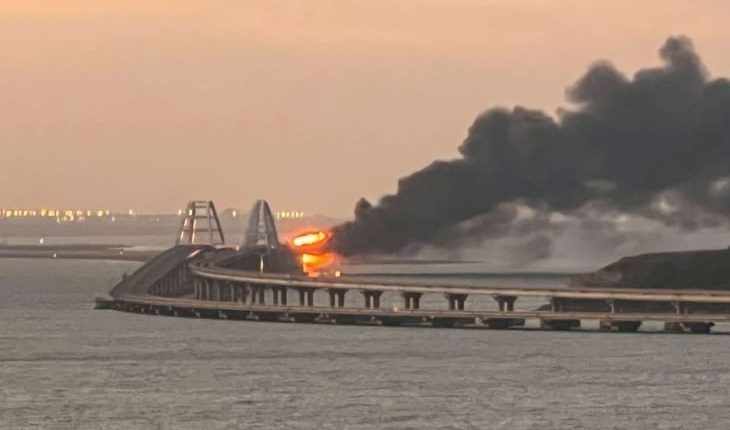 شبكة الشرق الأوسط نيوز : أفادت وكالة إنترفاكس الروسية للأنباء أن جهاز الأمن الاتحادي للروسي قال اليوم الأربعاء إنه اعتقل خمسة روس وثلاثة مواطنين من أوكرانيا وأرمينيا لصلتهم بالانفجار الذي دمر جسر القرم يوم السبت الماضي.