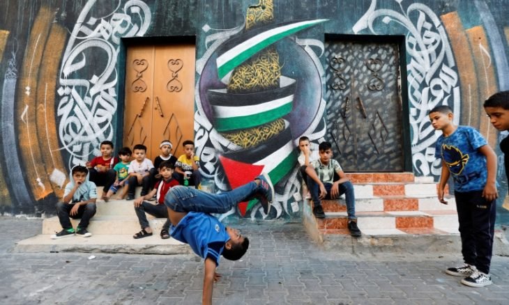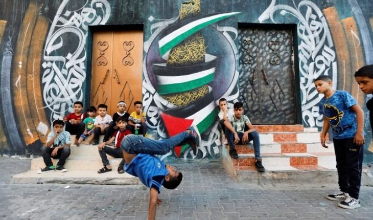 شبكة الشرق الأوسط نيوز : شارك أطفال في فعالية رقص “بريك دانس” أقيمت في مخيم النصيرات للاجئين الفلسطينيين وسط قطاع غزة.