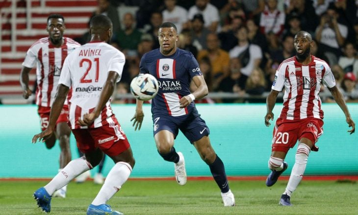 افتتح الفريق الباريسي ثلاثيته عند الدقيقة 24 من هجمة سريعة أنهاها النجم الأرجنتيني ليونيل ميسي بتمريرة رائعة إلى كليان مبابي الذي لم يتردد في إيداعها المرمى.
