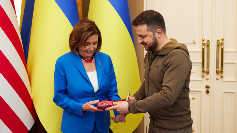زيلينسكي يقلد بيلوسي ورؤساء برلمانات غربية أوسمة شرف أوكرانية