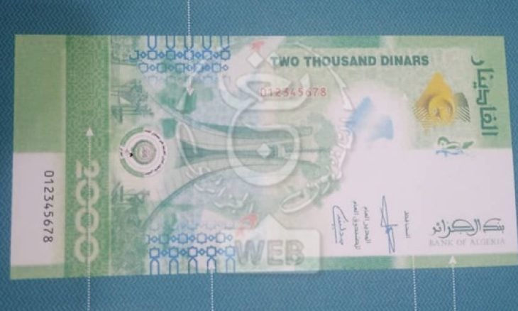قدم بنك الجزائر (البنك المركزي)، الورقة النقدية التذكارية الجديدة، بقيمة ألفي دينار، يوم الإثنين الماضي، بمناسبة انعقاد القمة العربية الـ31 بالجزائر. وأشار البنك إلى أن وجه الورقة النقدية يحمل موضوع “التحرير والاستقلال”، متضمنا أنماطا زخرفية ورسما مقتبسا من صورة للاحتفال بالاستقلال وصورة للأمير عبد القادر وأيضا شعار قمة جامعة الدول العربية وخريطة العالم العربي. أما ظهر الورقة النقدية فيتضمن “بطاقة بريدية للجزائر” تحمل صور أقواس صخرية طبيعية في الصحراء الجزائرية وشاطئ مرسى بن مهيدي غرب الجزائر وجمال وجبال الهقار وجامع الجزائر والآثار الرومانية لتيبازة.