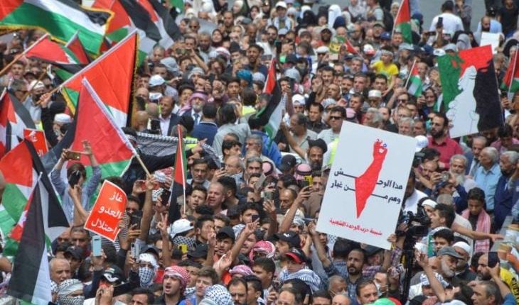 مئات الأردنيين يخرجون بمسيرة في وسط عمّان تضامنا مع فلسطين