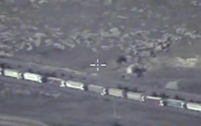 وأشارت المصادر الإعلامية إلى أن القصف استهدف شاحنات تحمل أسلحة وصهاريج نفط في ريف البوكمال في شرق محافظة دير الزور الحدودية مع العراق.