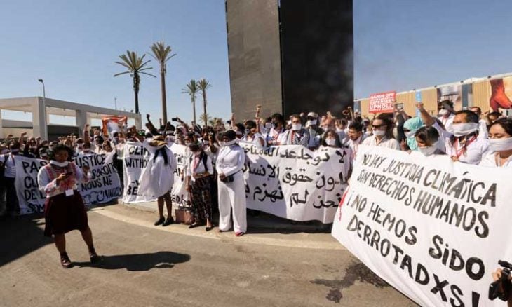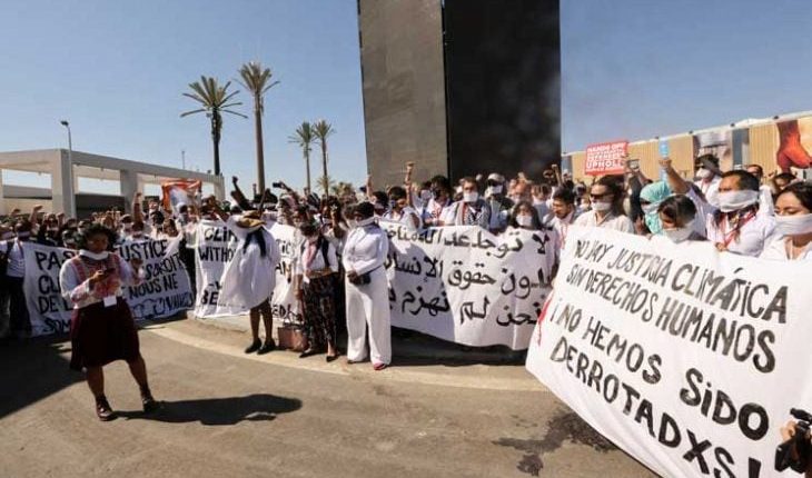 شبكة الشرق الأوسط نيوز : نظم عشرات النشطاء وقفة “بالملابس البيضاء” تضامنًا مع الناشط المصري والمدون علاء عبد الفتاح المضرب عن الطعام في محبسه، وسجناء الرأي المصريين، وذلك على هامش قمة المناخ في شرم الشيخ تحت شعار “لا عدالة مناخية بدون حقوق إنسان”.