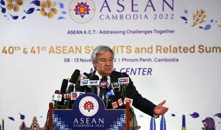 شبكة الشرق الأوسط نيوز : دعا الأمين العام للأمم المتحدة أنطونيو غوتيريش السبت من بنوم بنه حيث التقى قادة جنوب شرق آسيا، المجلس العسكري في ميانمار إلى “العودة إلى طريق التحوّل الديموقراطي فورًا”.