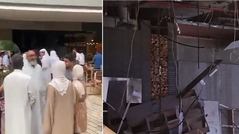 وتداول نشطاء مقطع فيديو بالقرب من المطعم الذي انهار سقفه، والموجود في مجمع يعتبر من أهم وأكبر مراكز التسوق في هذا البلد الخليجي.