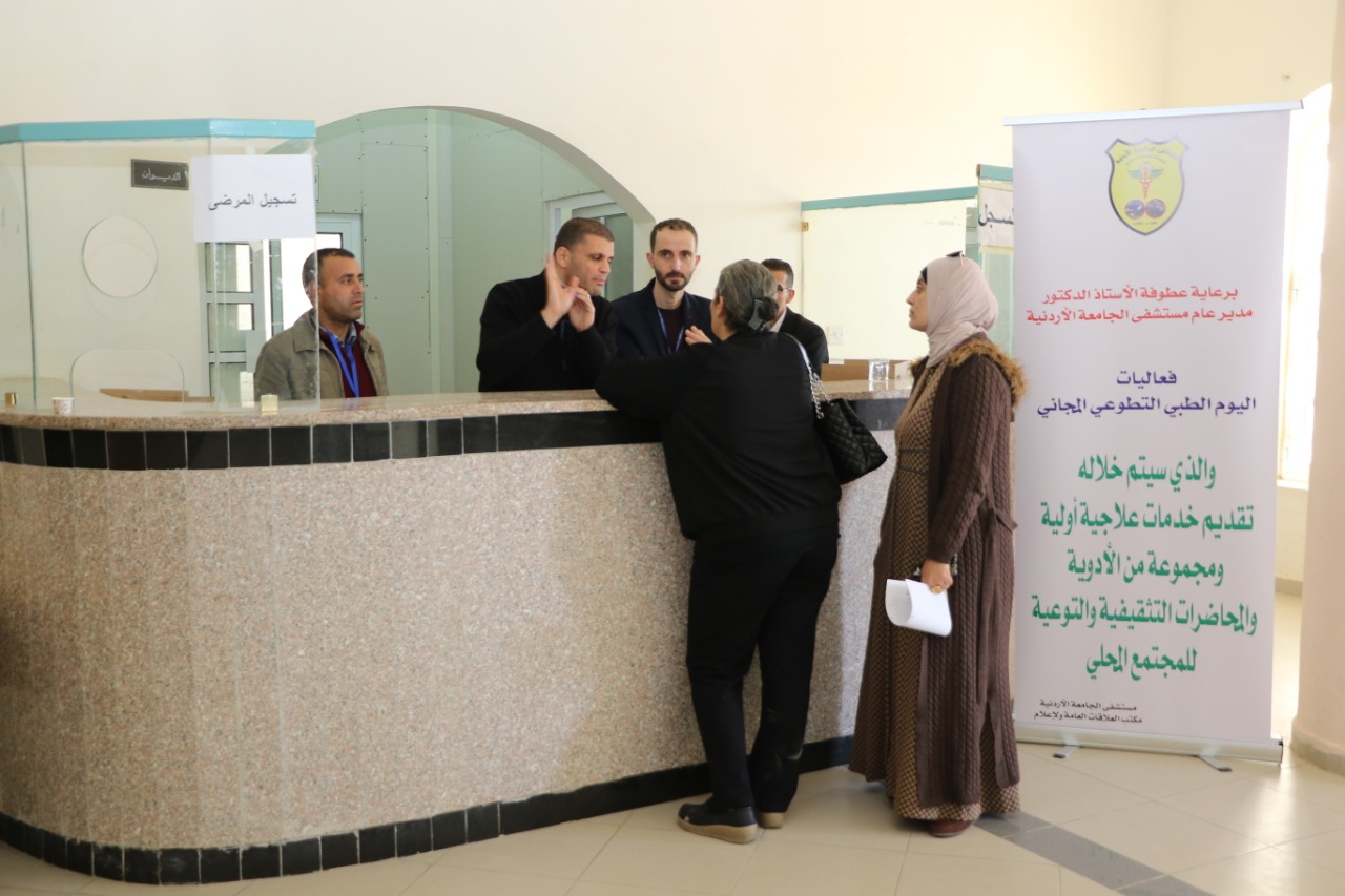 و افاد الدكتور محمود المصطفى نائب رئيس المستشفى للشؤون الإدارية انه تم احضار 11 عيادة تخصص و قد تم في هذا اليوم مراجعة حوالي 400 مواطن من مختلف الأعمار العيادات المتخصصة و تم صرف علاجات لهم جميعا تم تأمينها من قبل مستشفى الجامعة الأردنية و تبرعا لهذا اليوم من شركة أدوية الحكمة و شركة ريتاج للصناعات الدوائية.