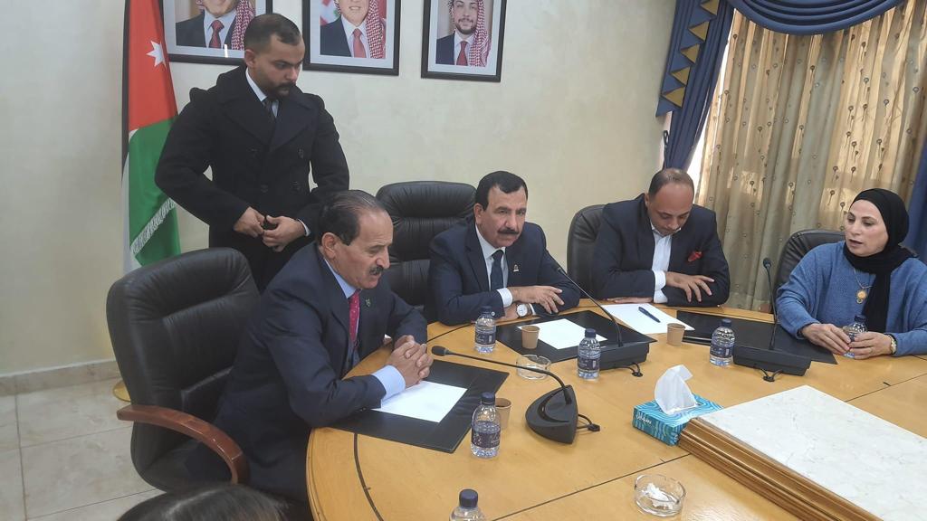 عضو مجلس محافظة العاصمة السيدة ” ايمان عبدالله شاهين” ورئيسة جمعية سيدات شفا بدران الخيرية وعضوة من أعضاء مؤسسة شباب قادرون والأمين العام الدكتور نواف الخوالدة والوفد المرافق يقدمون التهاني لسعادة النائب الدكتور أحمد الخلايلة