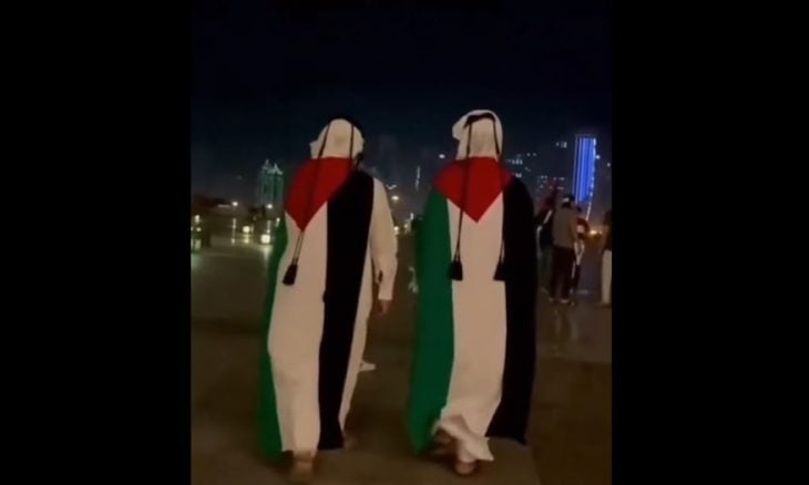 شبكة الشرق الأوسط نيوز : تداول ناشطون على مواقع التواصل الاجتماعي، مقطع فيديو لمشجعين قطريين يتوشحون العلم الفلسطيني في الدوحة قبيل 3 أيام من انطلاق كأس العالم 2022.