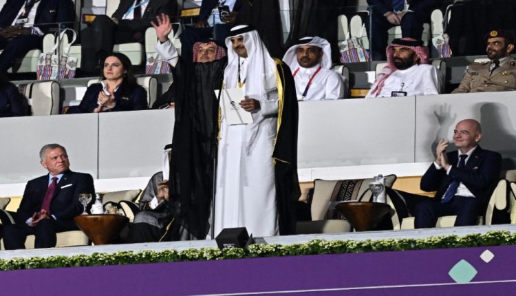 شبكة الشرق الأوسط نيوز : رحب أمير قطر الشيخ تميم بن حمد آل ثاني، الأحد، بالعالم أجمع في نهائيات كأس العالم لكرة القدم في استاد البيت في قطر.