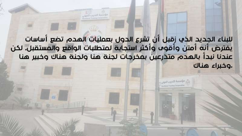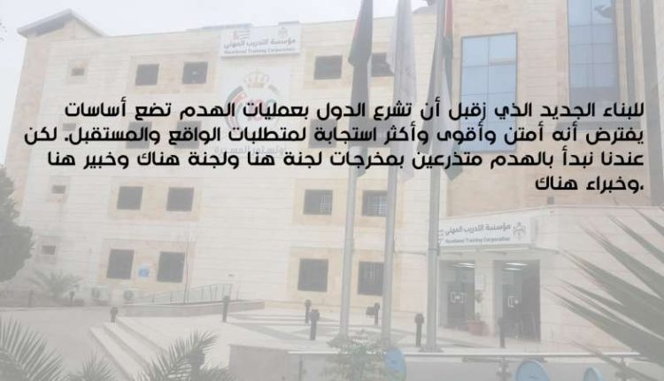 هذا بالضبط ما حدث لمؤسسة التدريب المهني، التي تطاولت عليها كافة الحكومات منذ أن خرجت الأجندة الوطنية الأولى تحت شعار ” الأردن أولاً ” وهي أجندة تتضمن عديد من الرؤى والغايات لكن لم يتم الالتزام بتنفيذها بشكل كامل وشامل، فقد تم اتباع أسلوب الترقيع والتفتيت والتجزئة، وكانت مؤسسة التدريب المهني أول المستهدفين بما سمي بالتطوير والتغيير، وتحت ذريعة عدم موائمة مخرجات المؤسسة مع متطلبات سوق العمل وتحديداً القطاع الخاص، وأيضاً بذريعة إشراك القطاع الخاص، فقد بدأت نذر الإنهيار تلوح في كل قرار كان يجد تنفيذاً له على حساب مقدرات ومشاغل وتجهيزات المؤسسة هدفاً مفضلاً وسهلاً لتحقيق غايات أبداً لم تؤد لأية تغييراتٍ منشودة.
