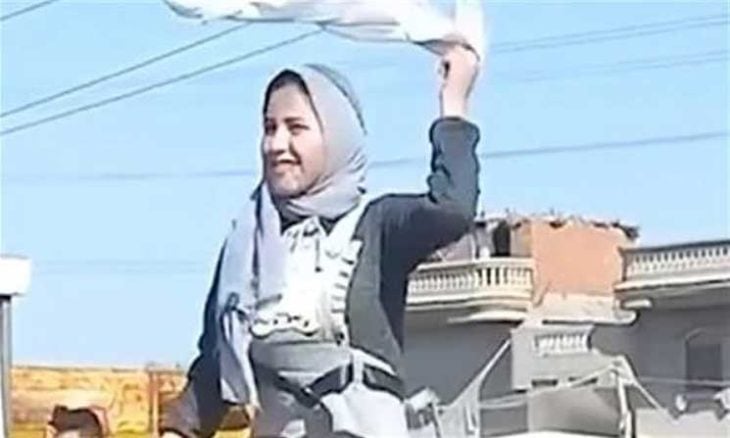 وأظهر مقطع الفيديو المتداول أهالي المدينة يحملون فتاة على الأعناق وسط الحشود وجابوا بها المدينة بأكملها.