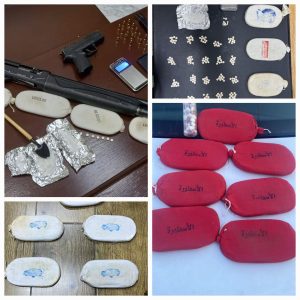 ففي العاصمة تم التعامل مع خمس قضايا القي القبض خلالها على خمسة مروجين وضبط في القضية الاولى 7 كفوف حشيش وكمية من الحبوب المخدرة ، وفي الثانية ضبطت خمسة كفوف حشيش ، فيما ضُبط بحوزة المقبوض عليه في القضية الثالثة على سبعة كفوف حشيش وكمية من مادة الكريستال وسلاحان ناريان ، وضبط سبعة كفوف حشيش في القضية الرابعة وفي القضية الأخيرة وبعد القاء القبض على المروج وتفتيش منزله عثر داخله على نصف كيلو كريستال وكمية كبيرة من الحبوب المخدرة .