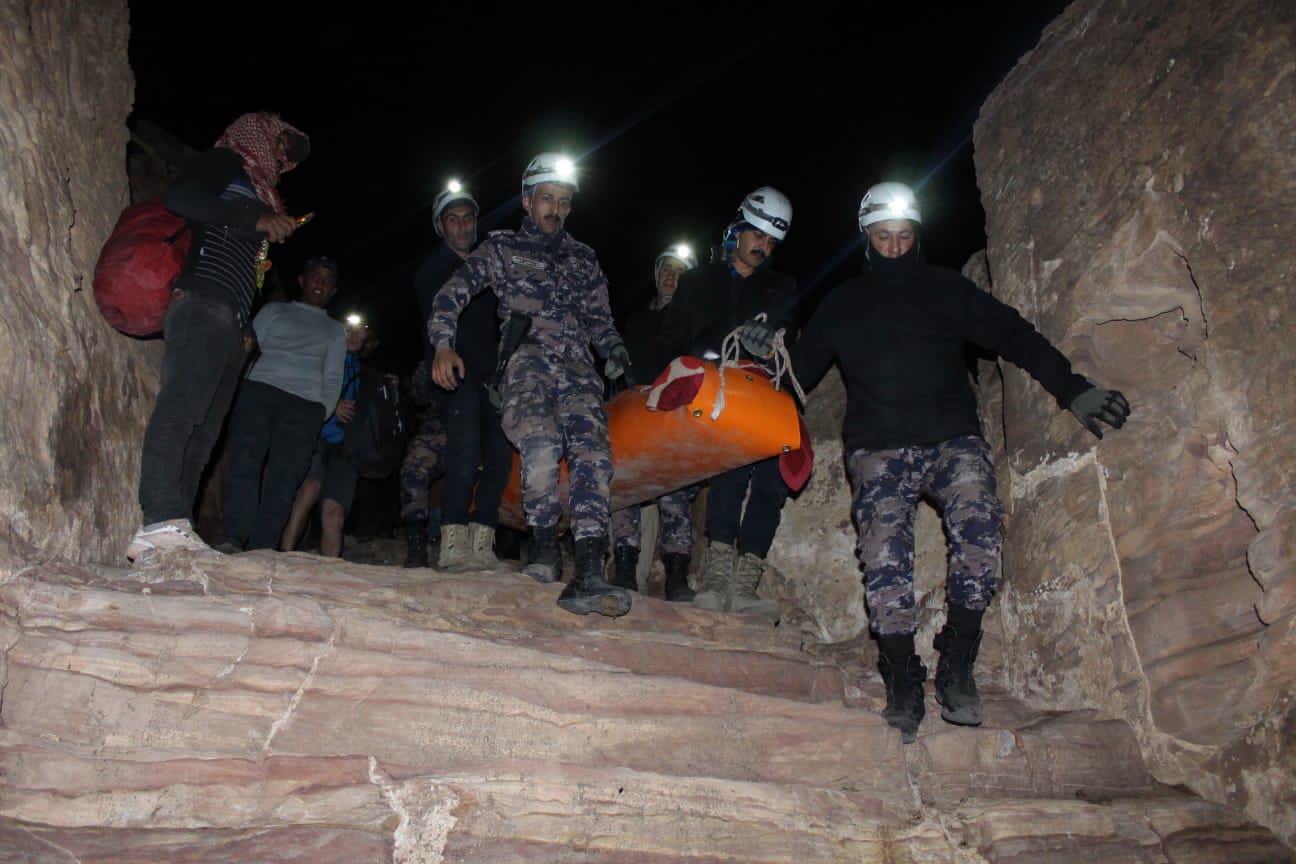 الدفاع المدني ينقذ سائحاً من جنسية أجنبية سقط عن مقطع صخري في محافظة معان