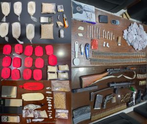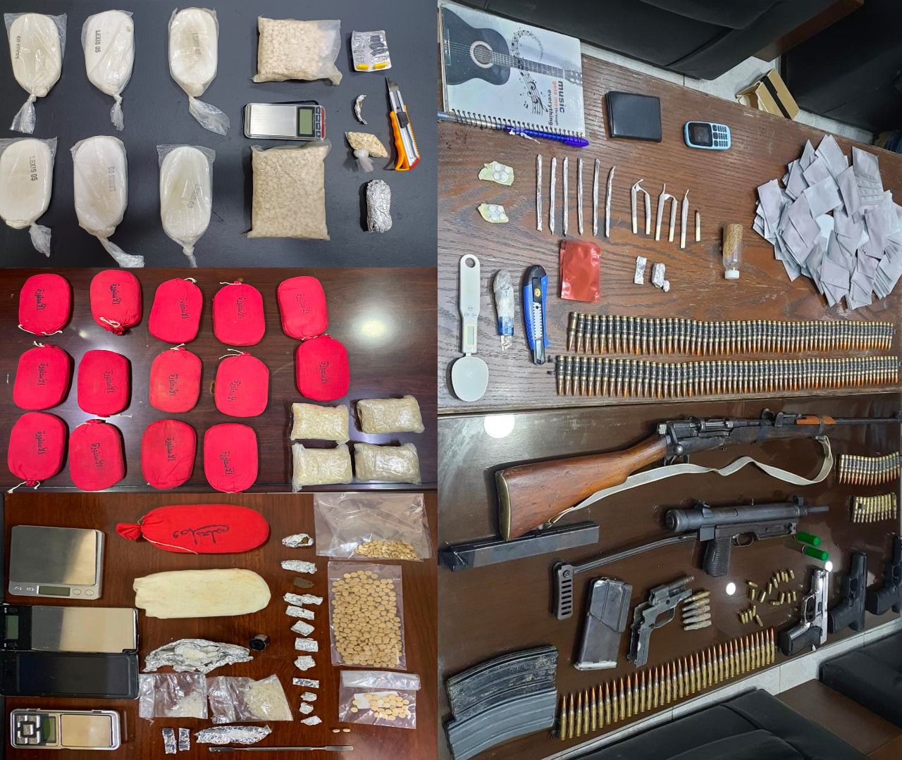 ** ضُبط بحوزتهم كميات كبيرة من المواد المخدرة والأسلحة النارية .