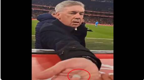 مشجع مغربي يفاجئ أنشيلوتي بطلب غريب في مباراة ريال مدريد وبلباو (فيديو)