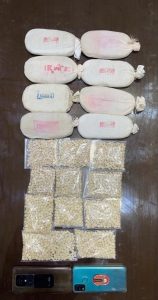 وفي البادية الشمالية وبعد مراقبة وجمع المعلومات عن شخص من جنسية عربية والتأكد من قيامه بالاتجار بالمواد المخدرة وتوزيع كميات كبيرة منها على مروجي المخدرات جرت مداهمته والقاء القبض عليه وضبط بحوزته 1 كغم من مادة الكريستال المخدرة.