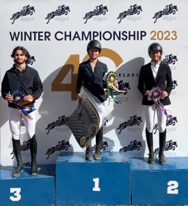 – فئة 90 سم، الاول:تيمور اولسيريم على الجواد (بنتلي)بزمن 62:33 ث، الثاني: سالم المحمود على الجواد (روكسيت)، الثالث: حمزة بيروتي على الجواد (سبيرات) ،الرابع:خليف الشواورة على الجواد (اسكابان) ، الخامس:دانا رعد على الجواد(سبيرات) السادس:مريم الدواود على الجواد(اسكابان).