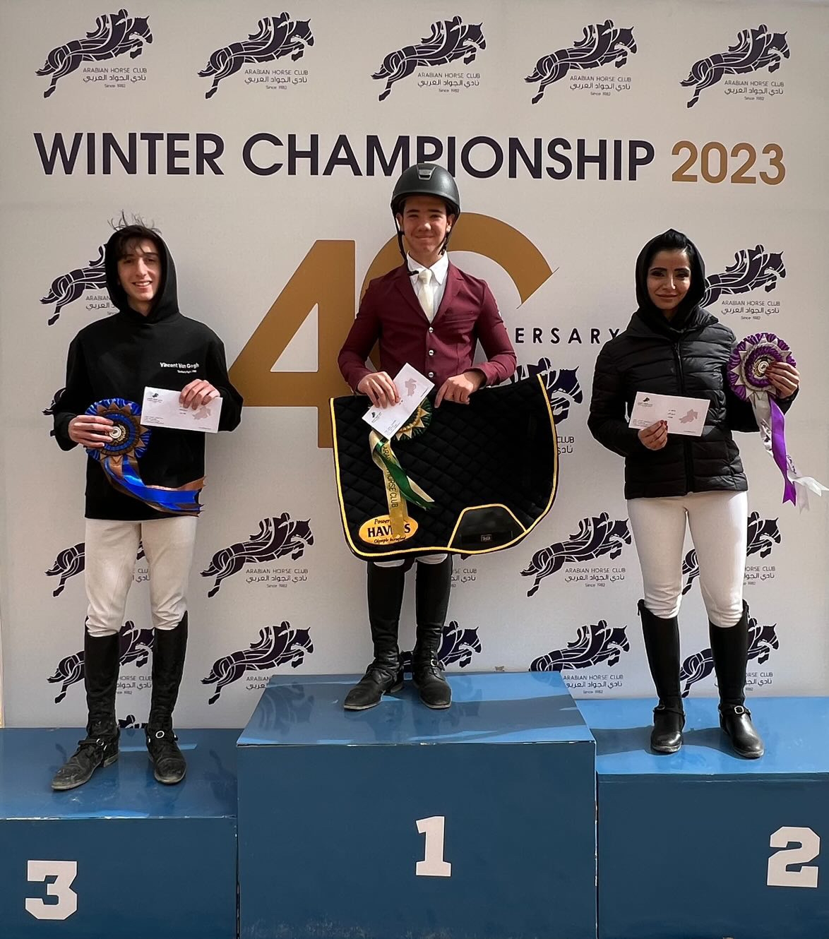 شبكة الشرق الأوسط نيوز : توج الفرسان رعد وعبد الرحمن قريشه بألقاب فئات الكبار، للجولة الثانية من بطولة الشتاء الجولة ضمن موسم 2023،والتي تتكون خمس جولات ، وتقام بالتعاون مع شركة القوة للفروسية وبإشراف اتحاد الفروسية الملكي واللجنة الاولمبيبة، وفقا لقانون الاتحاد الدولي للفروسية ،على ميدان الصالة الداخلية لنادي الجواد العرب،والتي جرت على ميدان صالة الابطال الصالة المغلقة وتوج في فئات الناشئين والناشئات كل من حلا ابو جابر ، تيمور اولسيريم ،نواف قضاة،براء خالد .
