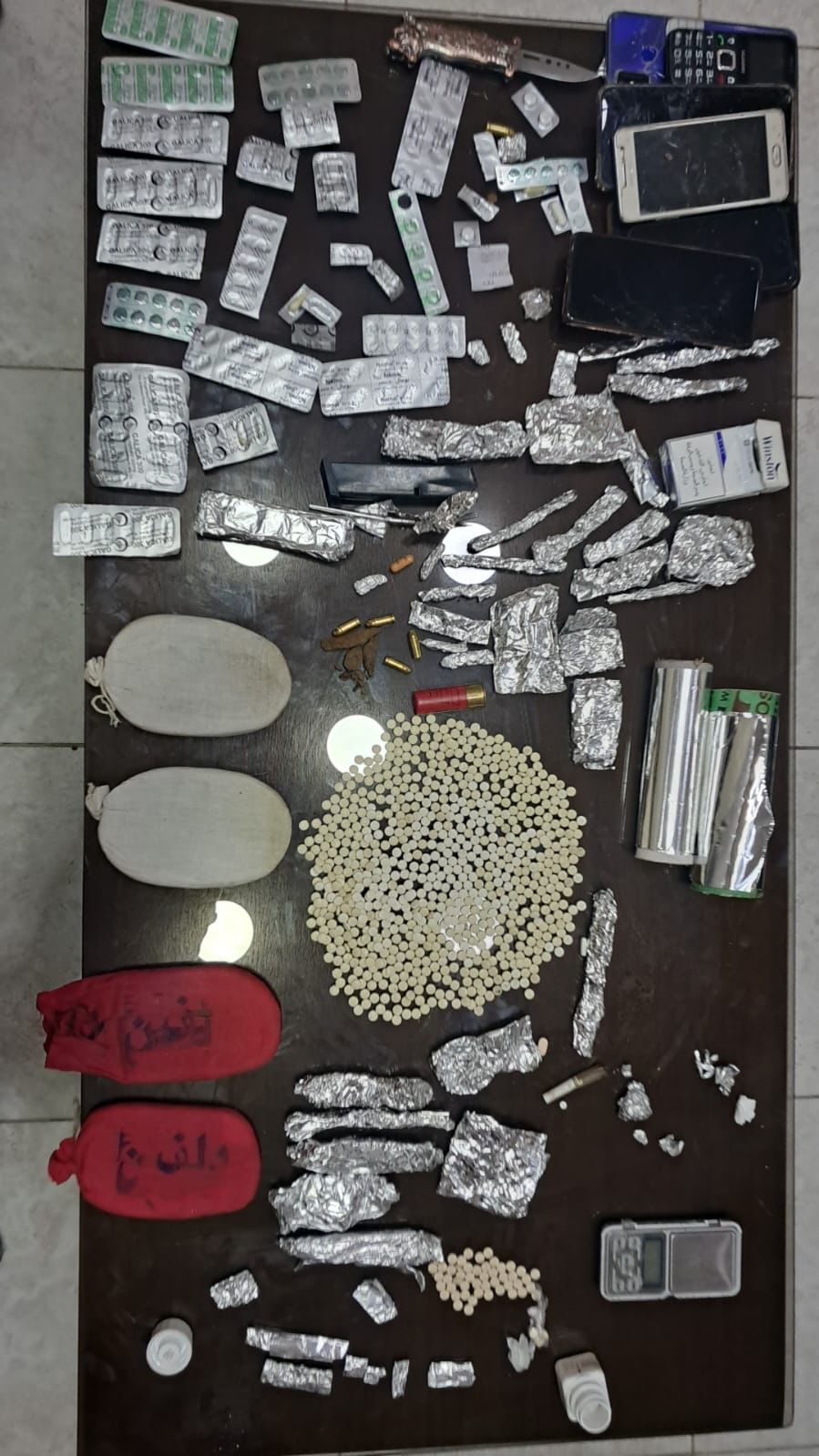 وفي القضية الاولى القي القبض على احد تجار المخدرات بعد مداهمة مكان وجوده شرق العاصمة وضبط بحوزته 50 كف حشيش و 10 الاف حبة مخدرة ، كما وضبط 35 كف حشيش و 3 الاف حبة مخدرة بحوزة تاجر آخر جرت مداهمته شرق العاصمة كذلك ، اما في البادية الوسطى فقد القي القبض على احد تجار المخدرات وبحوزته 49 كف حشيش و 8 الاف حبة مخدرة .