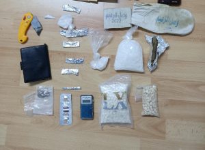 فيما جرت في محافظة المفرق مداهمة احد تجار المخدرات داخل مركبته والقي القبض عليه بعد أنْ ابدى مقاومة للقوة وضبط بحوزته 1500 حبة مخدرة وكف ونصف من الحشيش وكمية من مادة الكريستال المخدرة