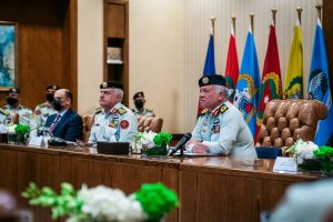 وأكد جلالته، بحضور رئيس هيئة الأركان المشتركة اللواء الركن يوسف أحمد الحنيطي ومدير الأمن العام اللواء عبيدالله المعايطة وكبار الضباط، أن القوات المسلحة والأجهزة الأمنية محط تقدير من الجميع باعتبارهم جزءا مهما في مسيرة الوطن.
