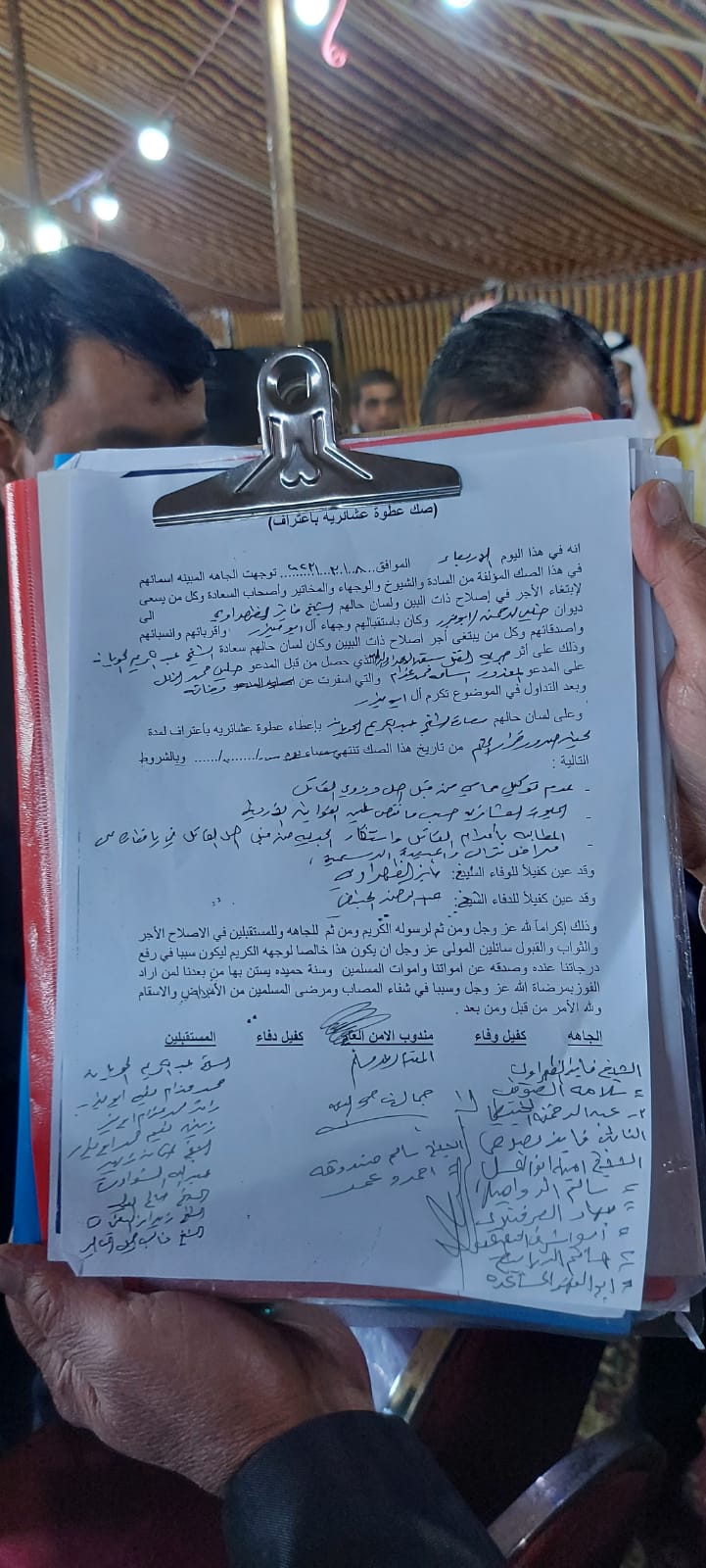 شبكة الشرق الأوسط نيوز : تكرمت عشيرة ابو ميزر مساء الأربعاء بإعطاء عطوة اعتراف على خلفية مقتل ابنهم الشاب إسامة محمد عزام طعنًا على يد احد الاشخاص في منطقة حي نزال بالعاصمة عمّان.