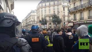 وذكرت مراسلة RT في فرنسا، أن النقابات العمالية ردا على قرار التصويت، دعت إلى احتجاجات يوم السبت وأنه تم قطع التيار الكهربائي عن ملعب باريس وورشة عمل خاصة بتحضيرات الألعاب الأولمبية.