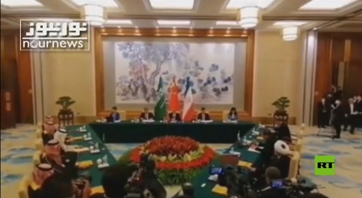 وأظهر الفيديو الإعلان عن استئناف العلاقات بين طهران والرياض.