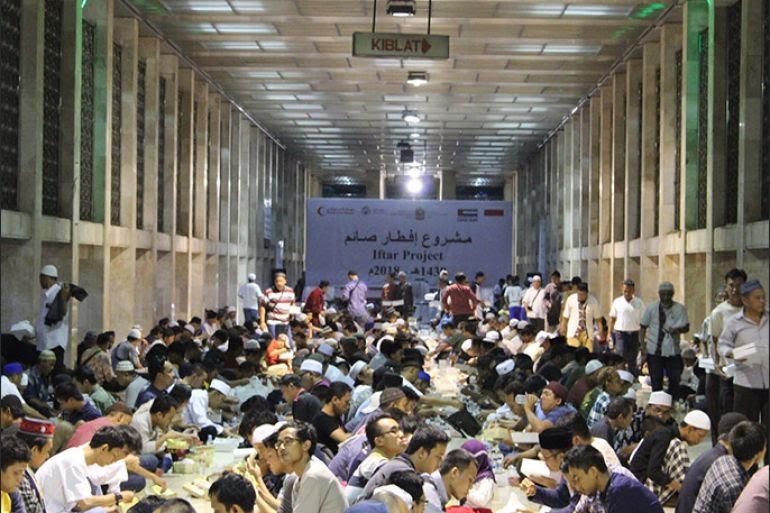 ويمتاز رمضان إندونيسيا باجتماع الفقير مع الغني على مأدبة الإفطار بالمسجد في ممارسة يحرص جل الإندونيسيين على تكريسها بكل عفوية، في كل نواحي البلاد.