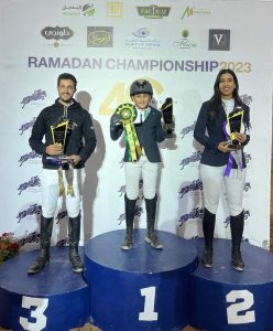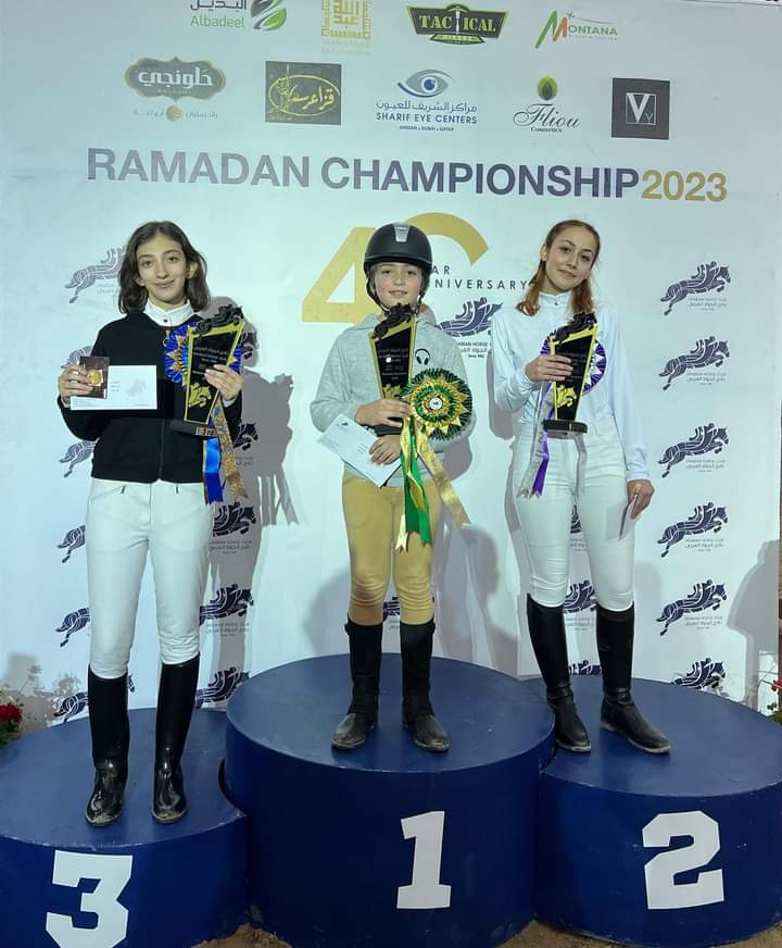 – فئة 100 سم، الاول: حمزة عليان على الجواد (لفلي) بزمن 21:23 ث، الثاني:منى الزيرة على الجواد (هيفن) بزمن 22:16 ث، الثالث: تاج بركات على الجواد (سلام) بزمن 22:54ث ،الرابع:عبد الرحمن قريشه ، الخامس: اشرف النهار ،السادس:انس الدليمي.