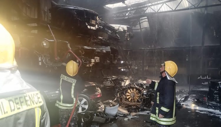 الدفاع المدني يخمد حريقاً داخل محلات تحتوي على قطع سيارات وزيوت بمحافظة العاصمة