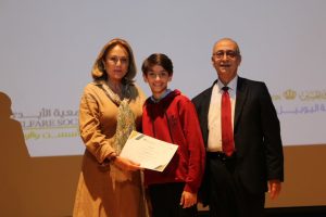 قامت سمو الأميرة عالية الطّباع، بتسليم الدروع للجنة الحكم والطلبة الفائزين، وتوزيع الشهادات على المدارس المشاركة.