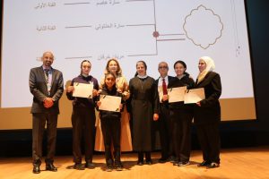 وتضمّن الحفل فقرة عن اللغة العربية، قدمتها الطالبتان رانيا عبيدات ودانة المومني من مدرسة اليوبيل، وفقرة عن الإلقاء الشعري للحاصلين على المركز الأول.