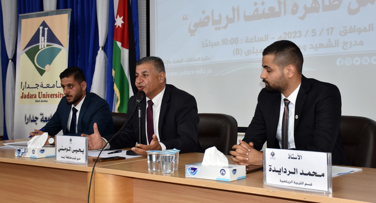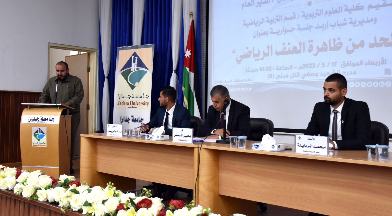 شاهد بالصور .. المراشده يرعى ندوة حوارية في جامعة جدارا حول الحد من ظاهرة العنف الرياضي