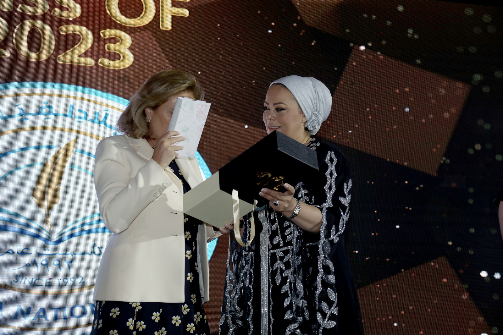 وتخلل الحفل العديد من الفقرات وفي نهاية الحفل وزعت سموها الجوائز على الطلبة المتفوقين من جميع التخصصات والشهادات على الخريجين.