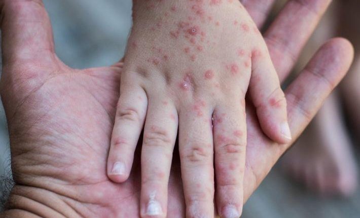 وبين أنه بعد مضي أيام عدة، يصاب المريض بطفح يظهر عادة على الوجه وأعلى العنق، وخلال 3 أيام تقريباً، يهبط الطفح لأسفل الجسم، فيطال اليدين والقدمين، مشيرا الى أن الطفح يدوم بين 5 و6 أيام ثم يختفي بعدها، ويحدث ذلك بين 7 و18 يوماً عقب التعرض للفيروس، ومتوسطها 14 يوماً.