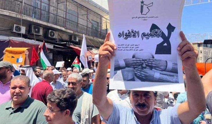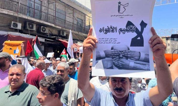 شبكة الشرق الأوسط نيوز : تجددت الفعاليات والملتقيات الوطنية في الأردن الجمعة للمطالبة بسحب قانون الجرائم الإلكترونية الجديد، الذي ينتظر الخطوة الثالثة المرتقبة لاكتمال دسترته عبر المصادقة الملكية عليه، بعدما أقره مجلسا الأعيان والنواب.