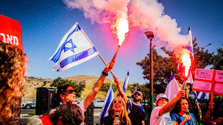 ويتظاهر الإسرائيليون منذ أكثر من 30 أسبوعا متواصلا ضد جهود حكومة نتنياهو لتمرير إصلاحات قضائية مثيرة للجدل، تؤدي وفق المعارضين لها، إلى عدم استقلالية القضاء في إسرائيل.