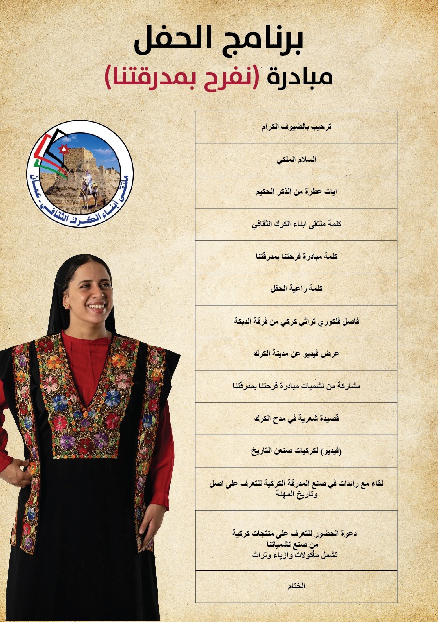 شبكة الشرق الأوسط نيوز : ملتقى أبناء الكرك الثقافي يقيم اليوم السبت 12\8\2023 الساعة السادسة مساء في فندق الفنار برعاية معالي الدكتوره رويده المعايطة وحضور معالي جمال الصرايرة ومعالي خوله العرموطي . المبادرة قامت بها نشميات كركيات بعنوان فرحتنا بمدرقتنا ..