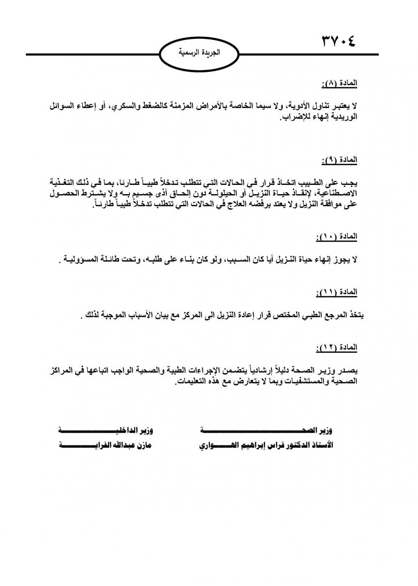 وبحسب التعليمات، يعامل النزيل المضرب عن الطعام أو الشرب بالاحترام الواجب لكرامته وتقدم له خدمات الرعاية الطبية والصحية بما يكفل حقه في الحياة ويمكنه من اتخاذ قرار طوعي ومستنير يحافظ على صحته وحياته ويتمتع بحقوقه كافة الواردة في قانون مراكز الإصلاح والتأهيل النافذ. وتاليا التعليمات: