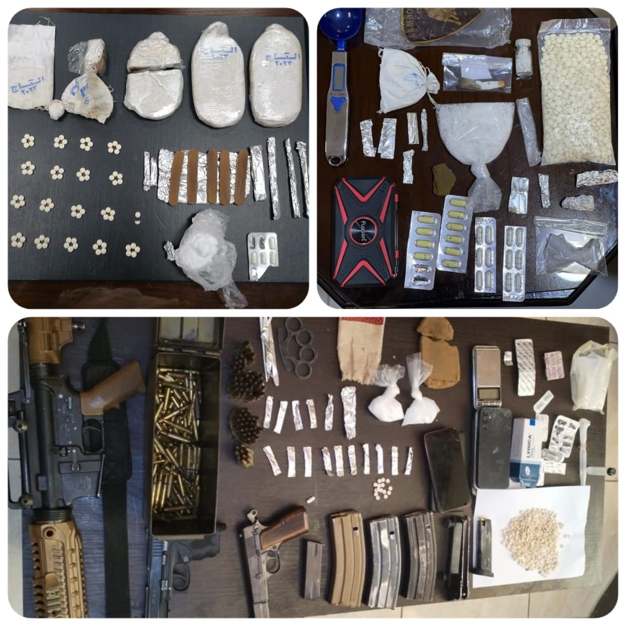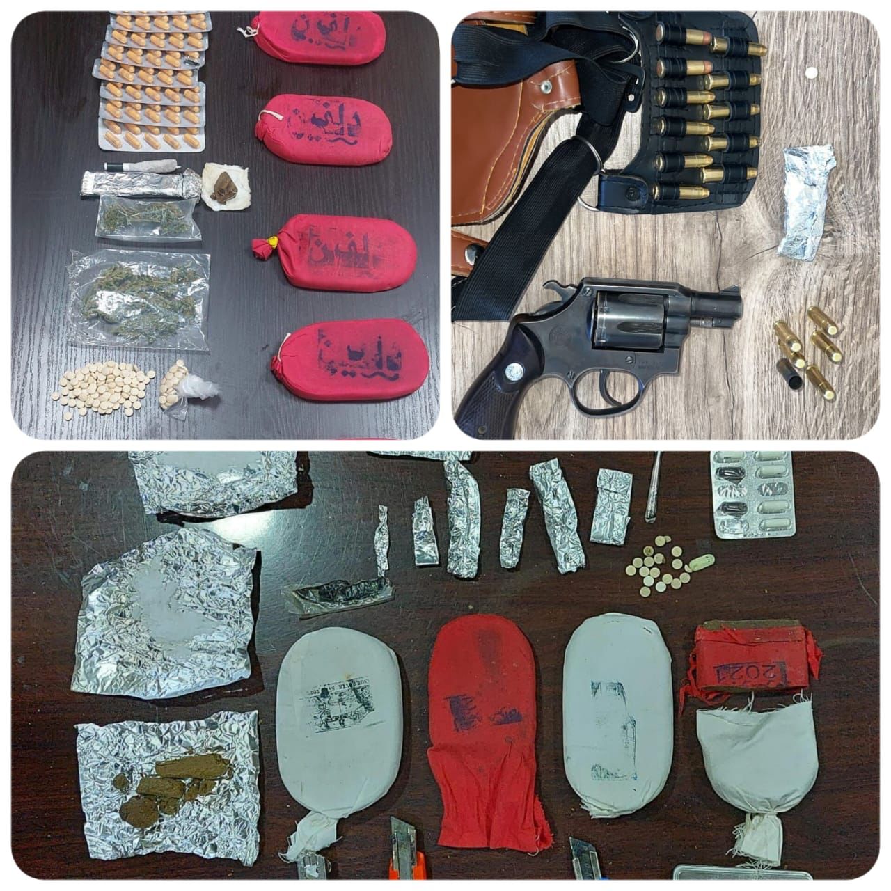 وفي البادية الشمالية جرت مداهمة احد أخطر تجار المخدرات والذي القي القبض عليه وضبط بحوزته 4 آلاف حبة مخدرة و 30 كف حشيش ، فيما جرى في احدى مناطق البادية الوسطى تحديد مكان مكان احد المطلوبين الخطرين بقضايا مخدرات وجرت مداهمته والقاء القبض عليه وبرفقته احد المروجين وضبط بحوزتهما على 3 كفوف حشيش وكميات معدة للبيع من مادة الكريستال والكوكايين المخدرة، كما ودوهم مطلوب اخر مصنف بالخطر في احدى مناطق البادية الوسطى ايضا والقي القبض عليه وضبط بحوزته كمية من المواد المخدرة المعدة للبيع .