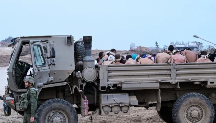 ونشر جيش الاحتلال لقطات لعشرات الأسرى الفلسطينيين نصف العراة المحتجزين في التراب قبل أسبوع، مدعية أنهم مقاتلون من حماس يستسلمون.